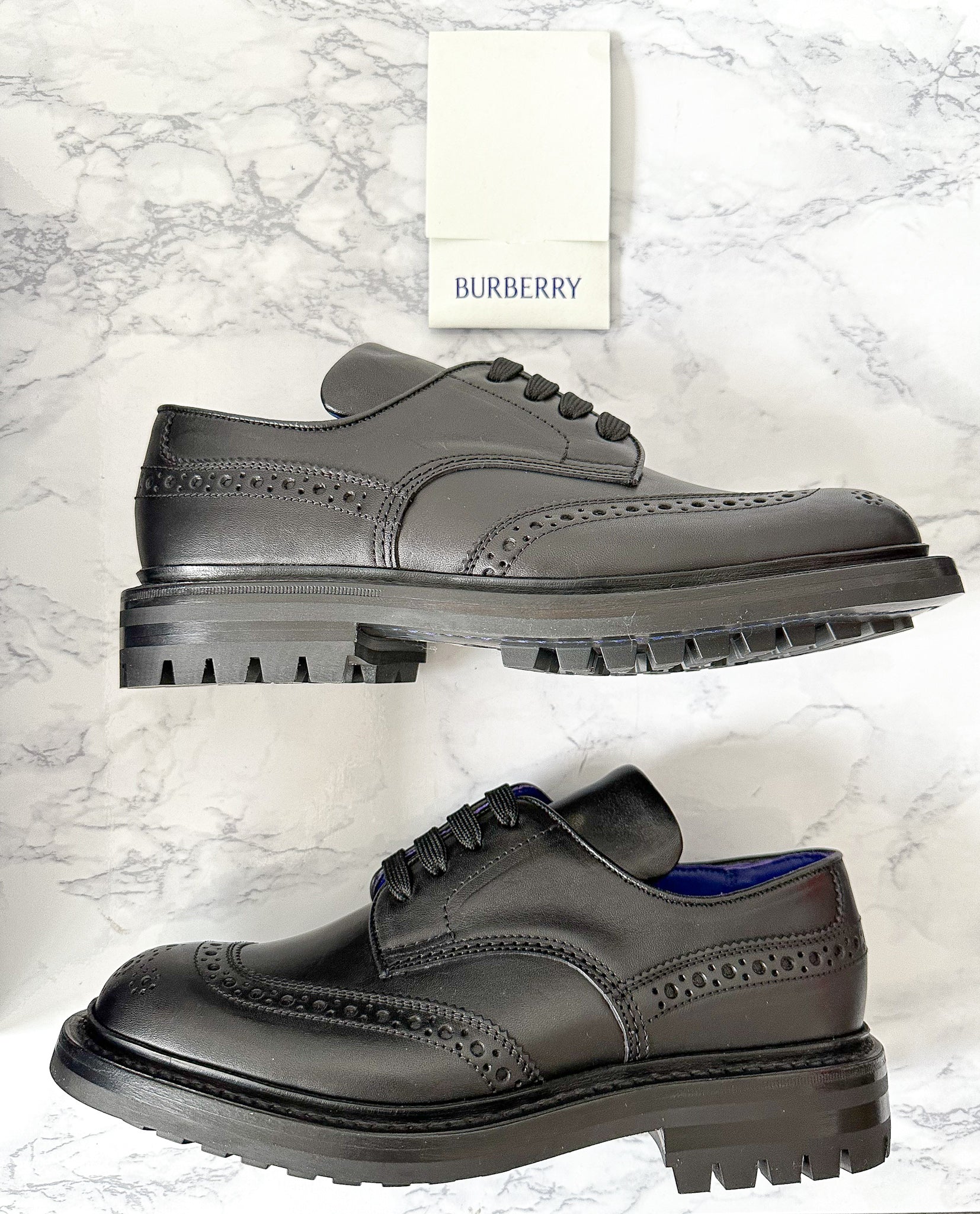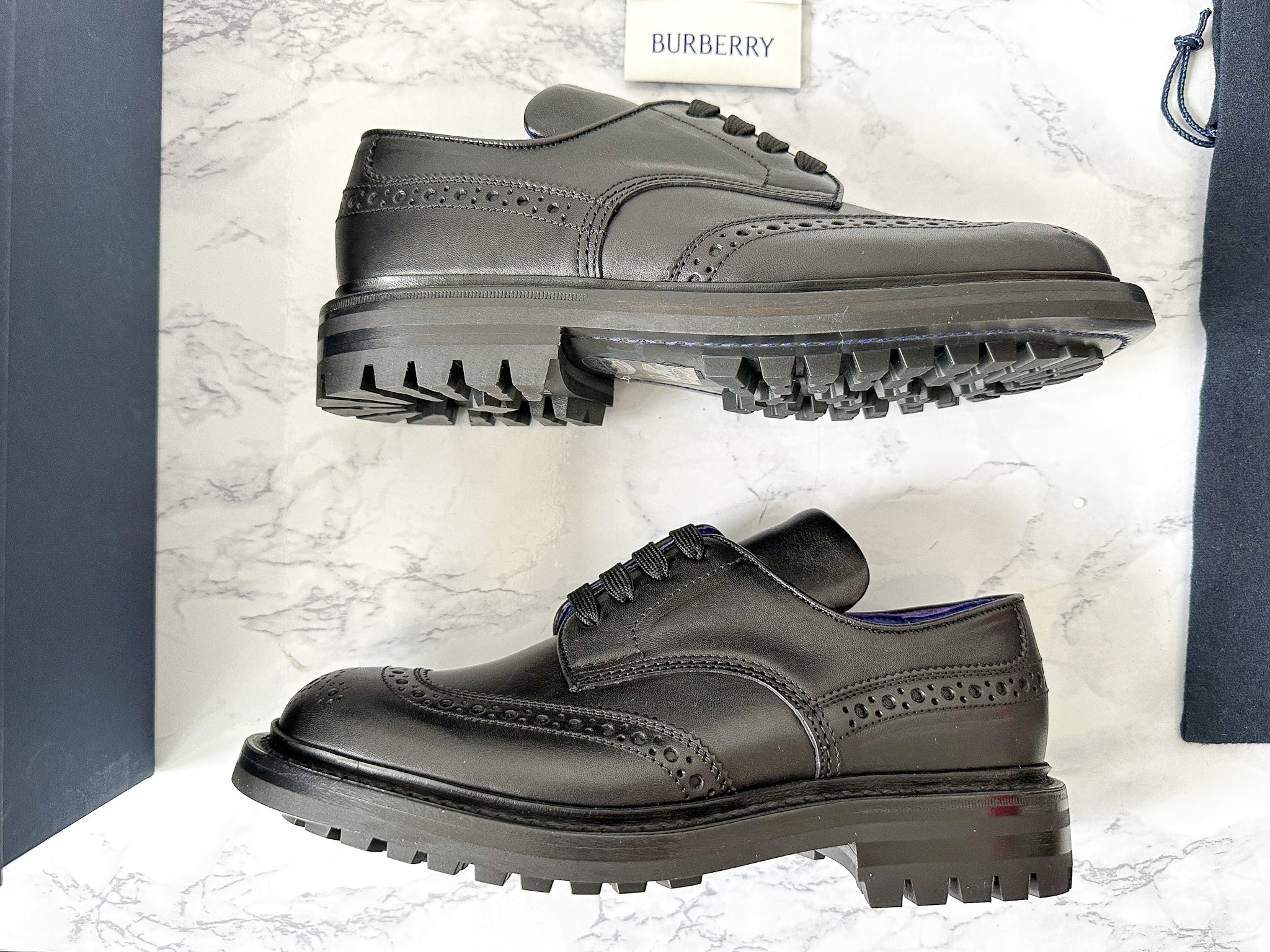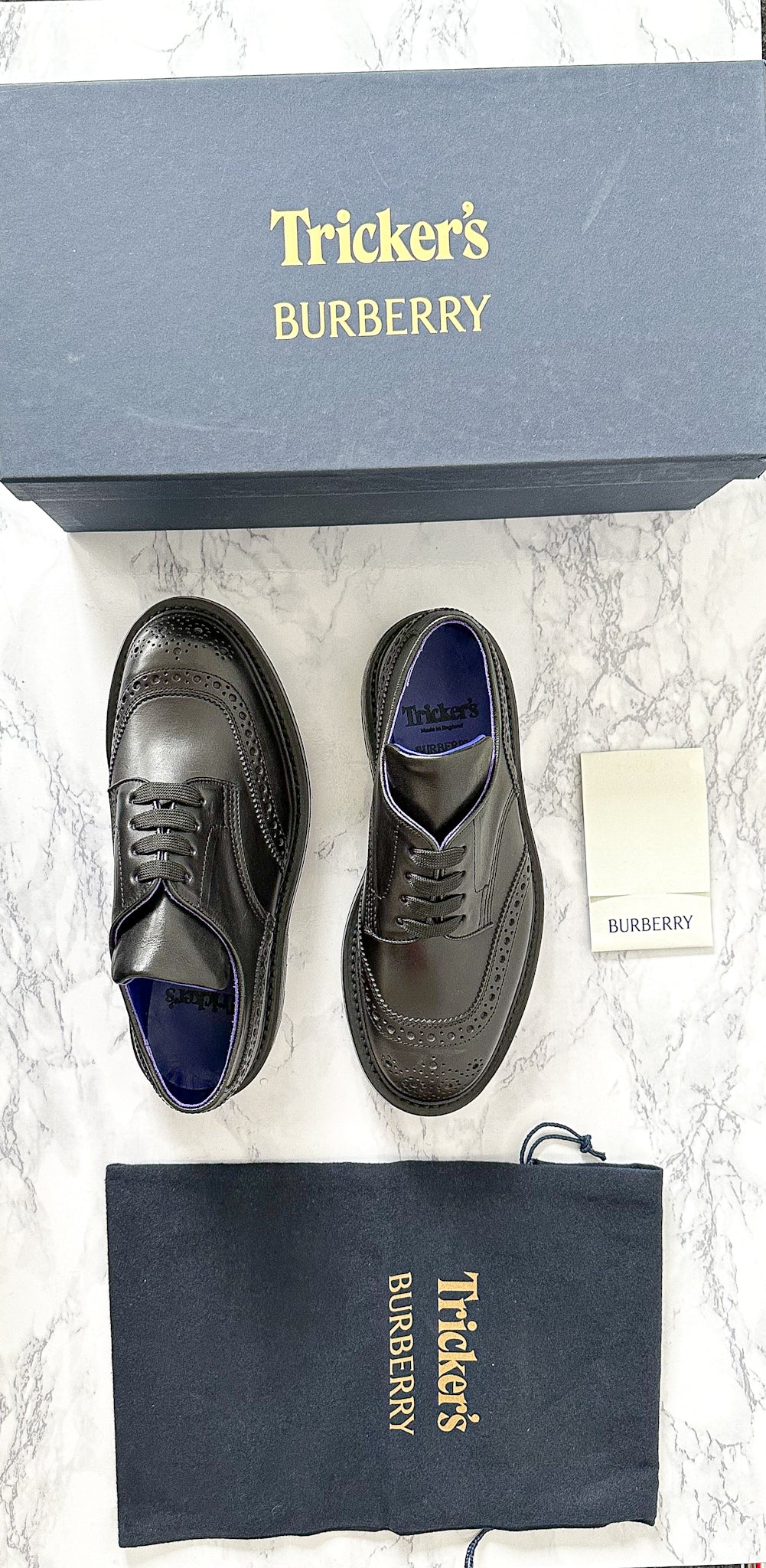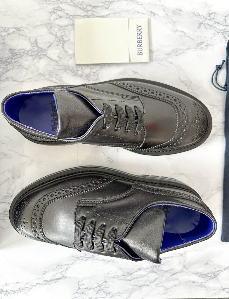 Indulge in pure luxury with the Burberry Tricker's Leather Devon Brogues in gorgeous deep purple. Made by Britain's oldest shoemaker in Northampton, these smooth calf leather brogues are a numbered, limited-edition design. Featuring an almond-shaped toe and lace-up closure, the Goodyear welted sole with rubber tread adds both style and functionality. Elevate your shoe game with this exclusive pair.