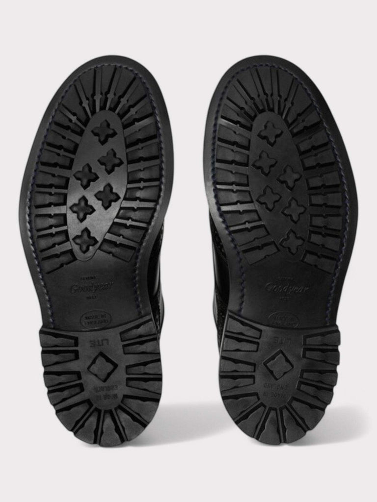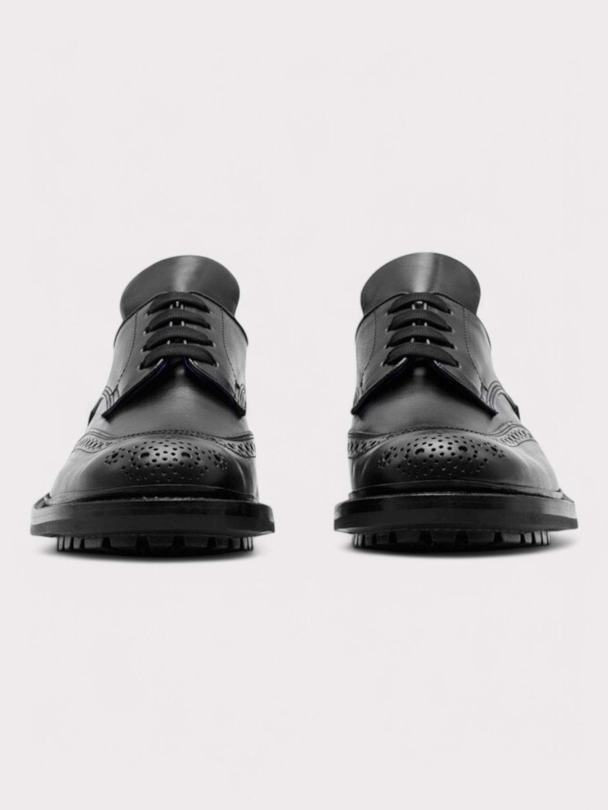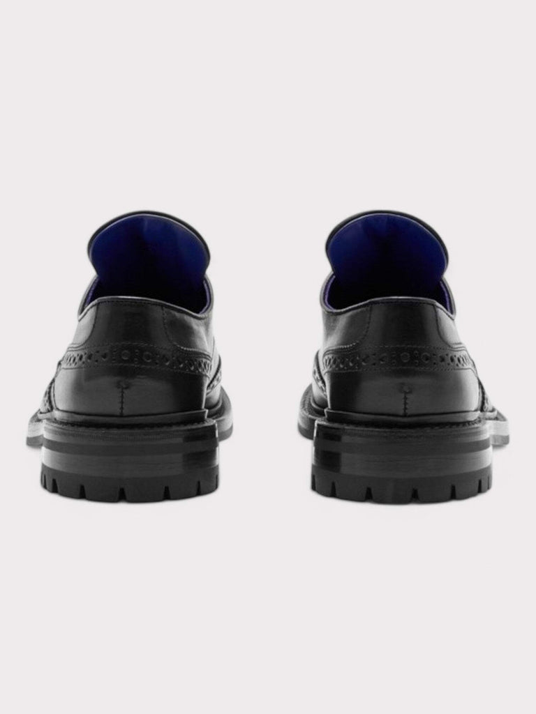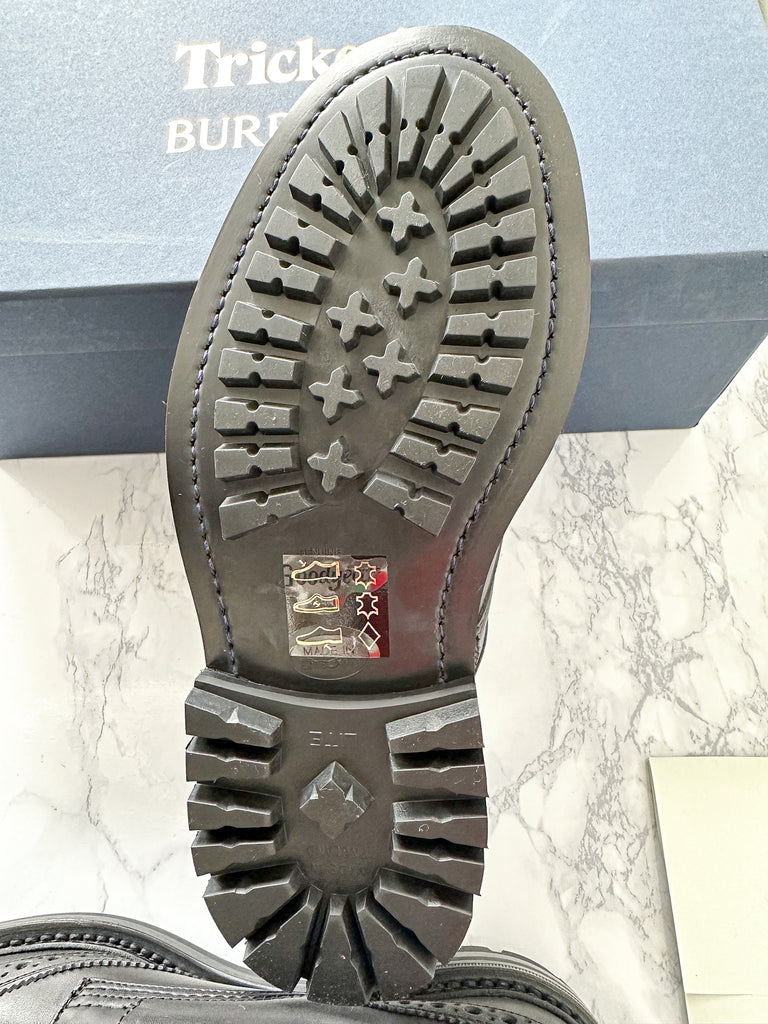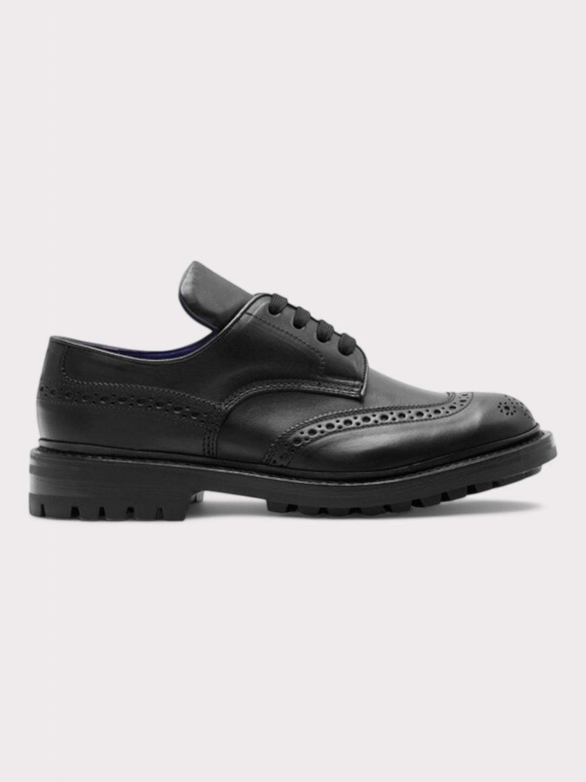 Indulge in pure luxury with the Burberry Tricker's Leather Devon Brogues in gorgeous deep purple. Made by Britain's oldest shoemaker in Northampton, these smooth calf leather brogues are a numbered, limited-edition design. Featuring an almond-shaped toe and lace-up closure, the Goodyear welted sole with rubber tread adds both style and functionality. Elevate your shoe game with this exclusive pair.