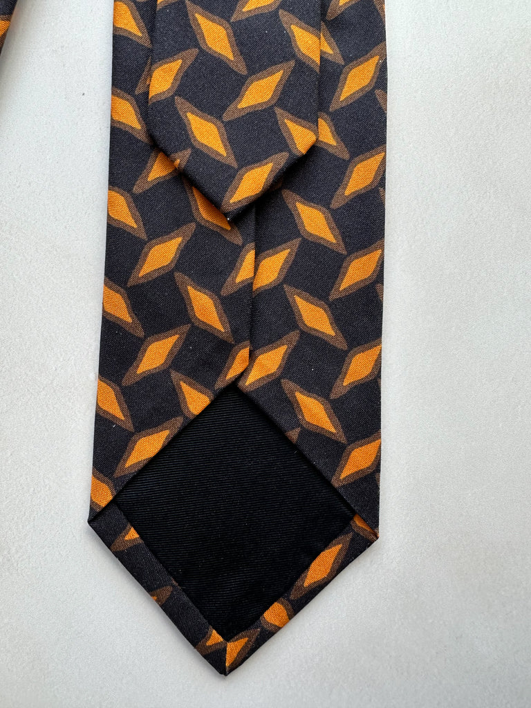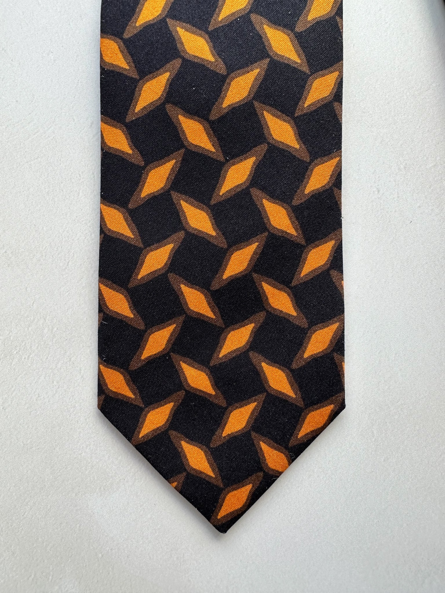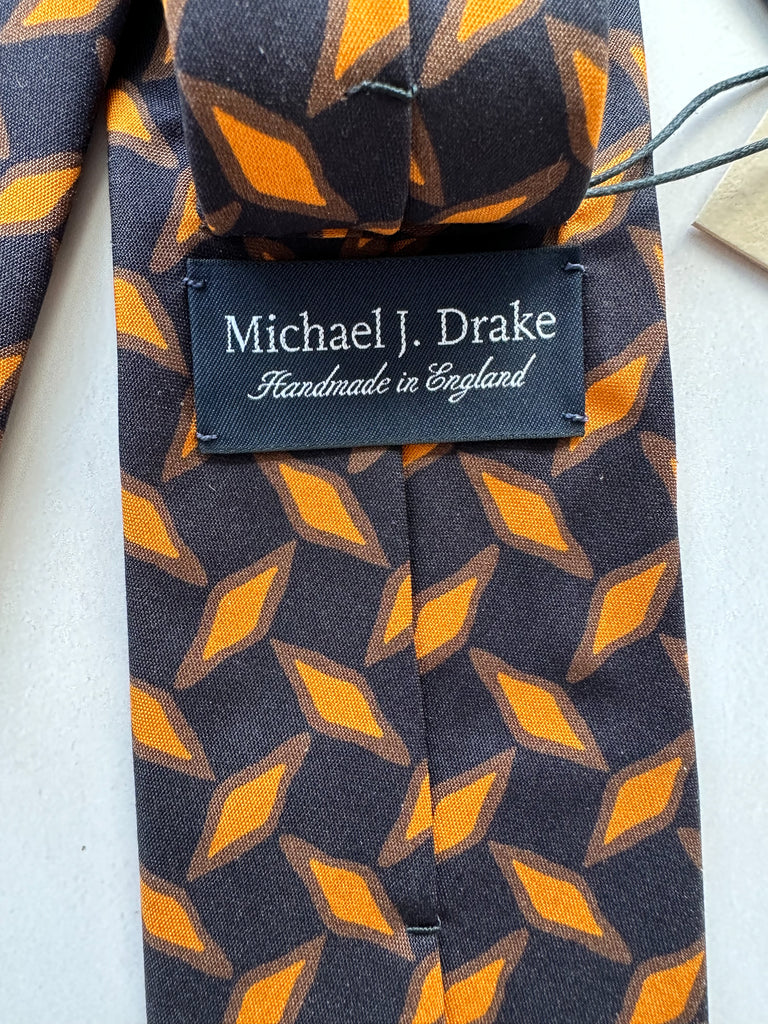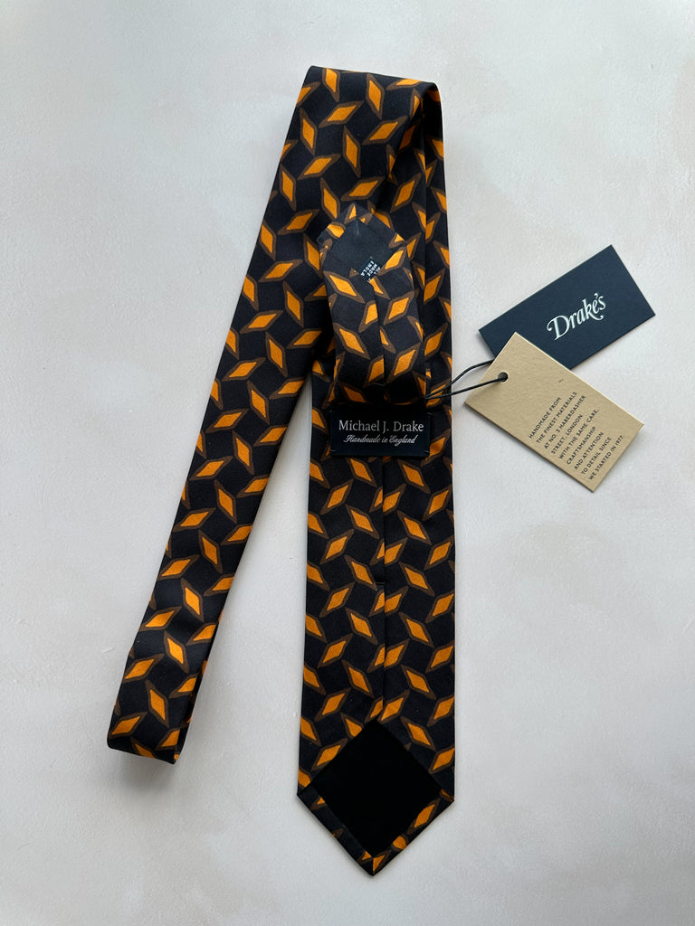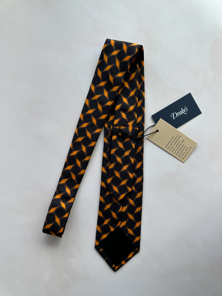 Drake's Michael J Drake Black Orange Diamond Print Silk Tie
