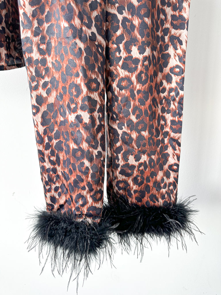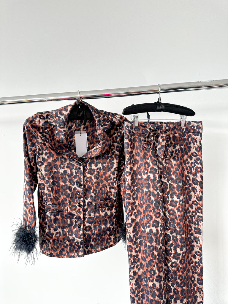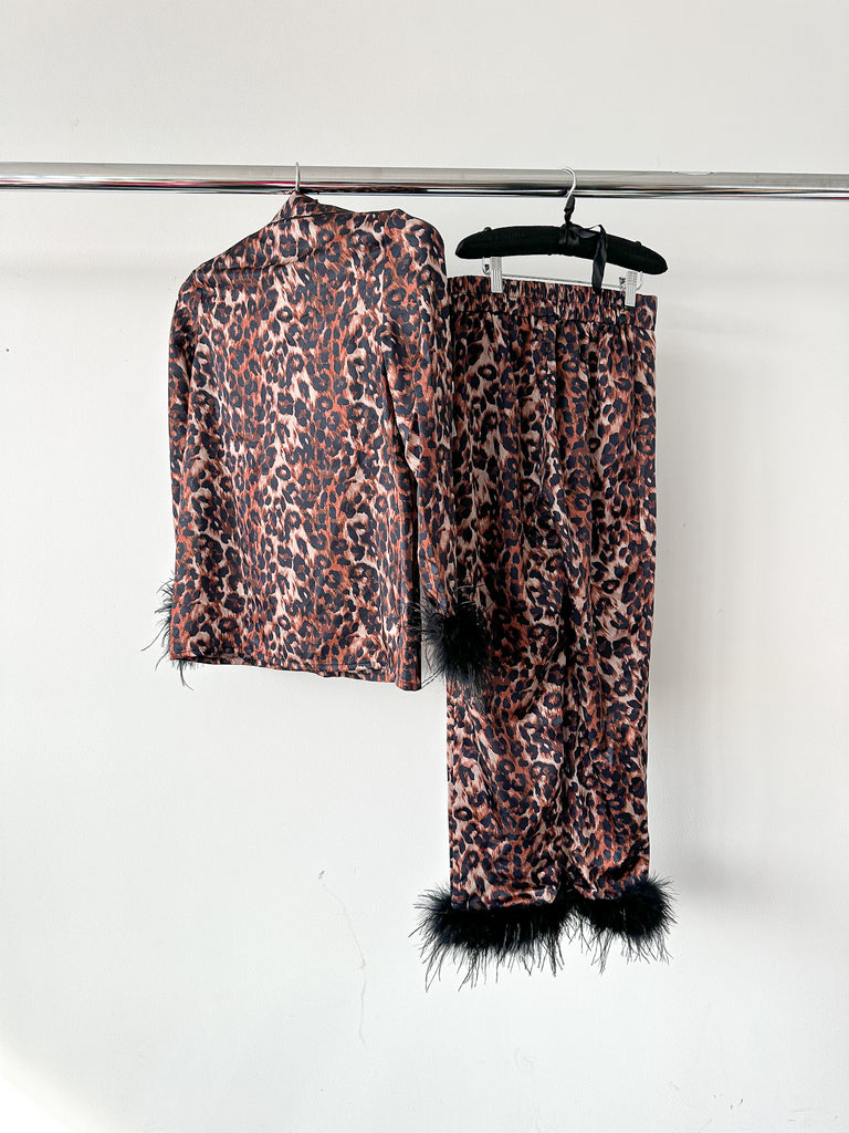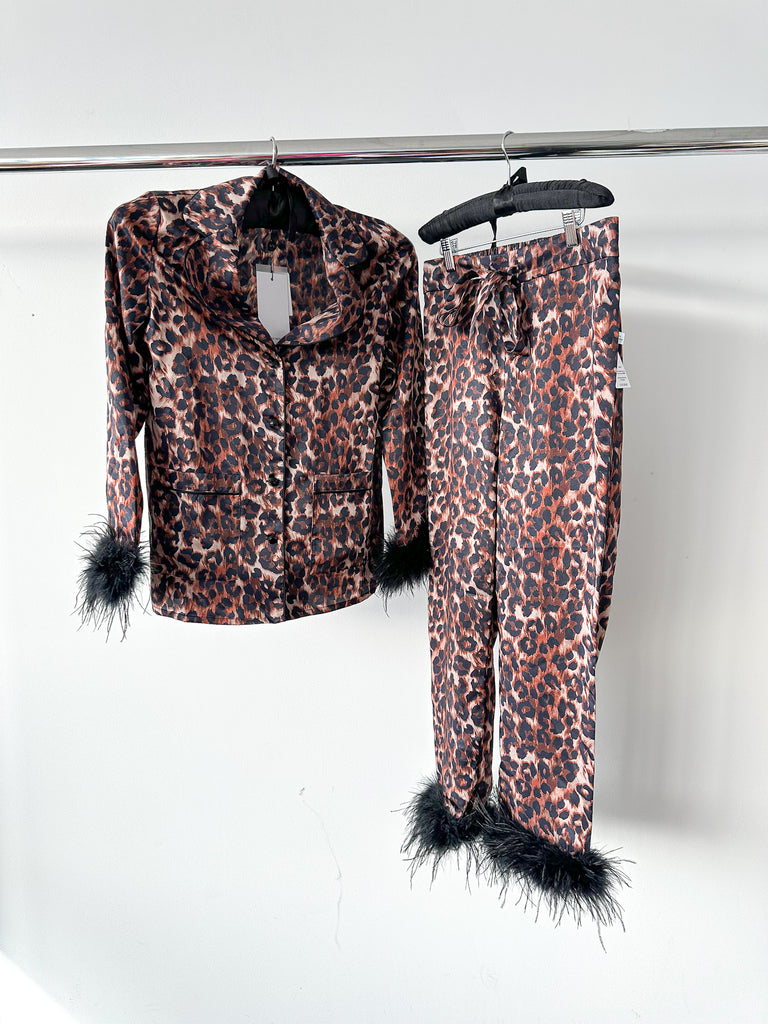 ชุดนอนแขนขนนก darcie พิมพ์ลายเสือดาว NADINE merabi