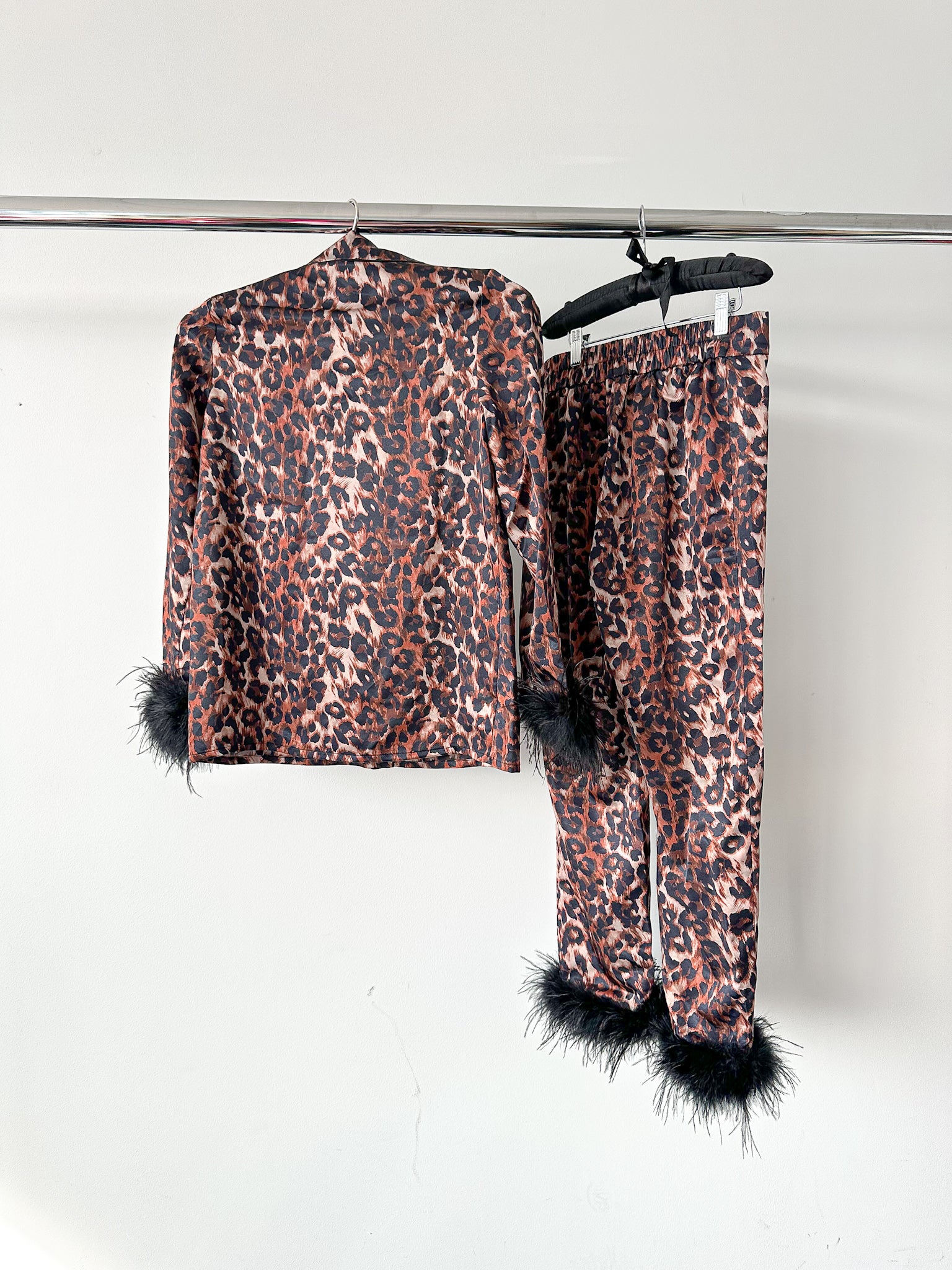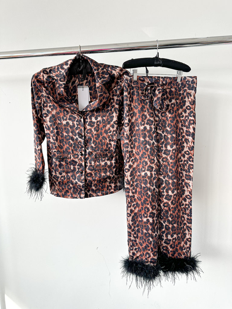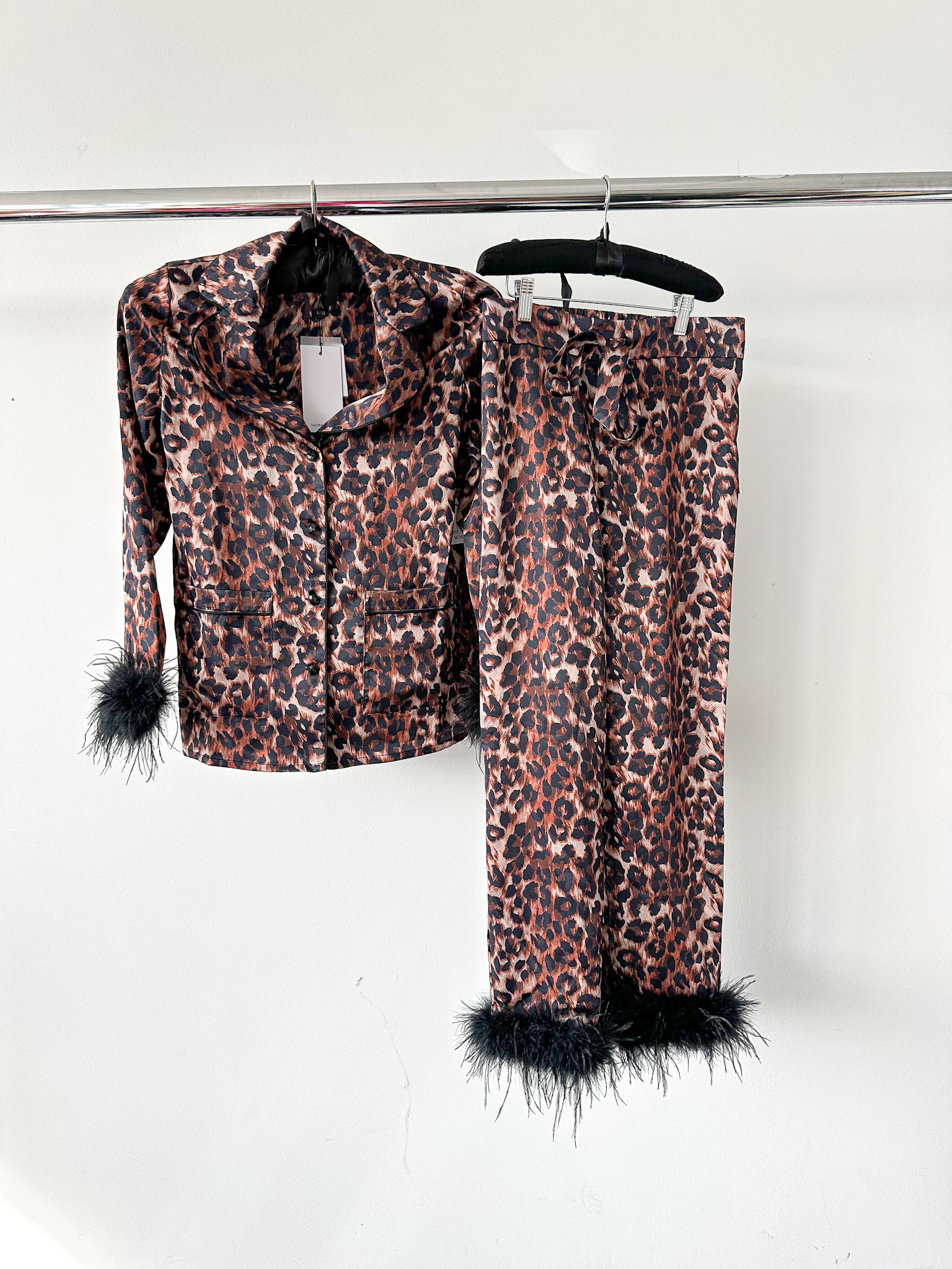 ชุดนอนแขนขนนก darcie พิมพ์ลายเสือดาว NADINE merabi