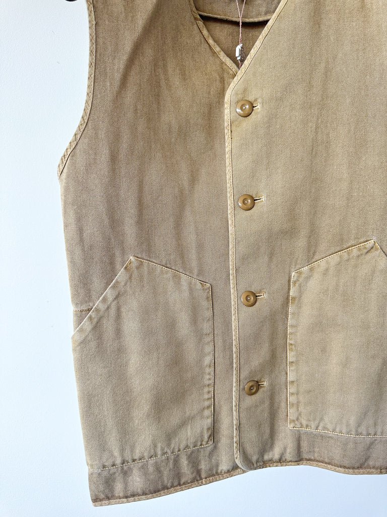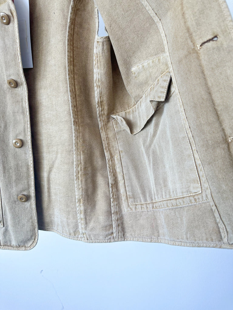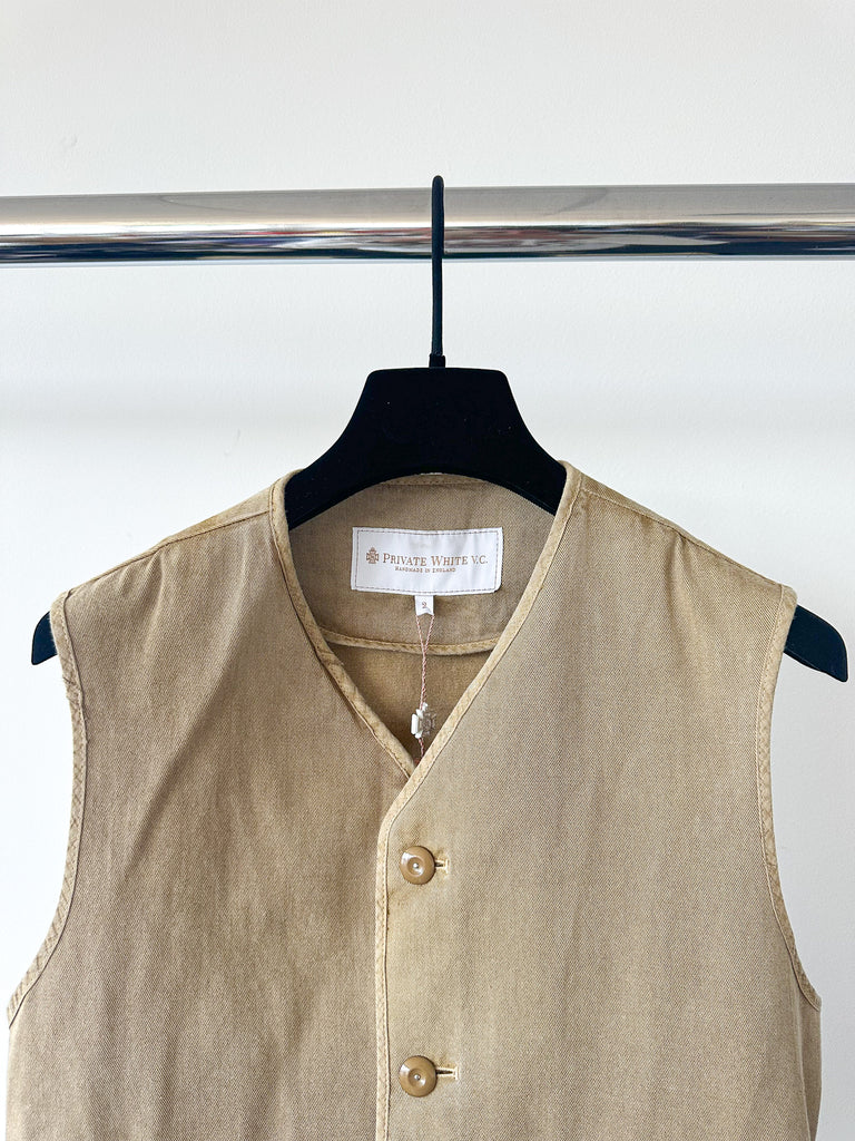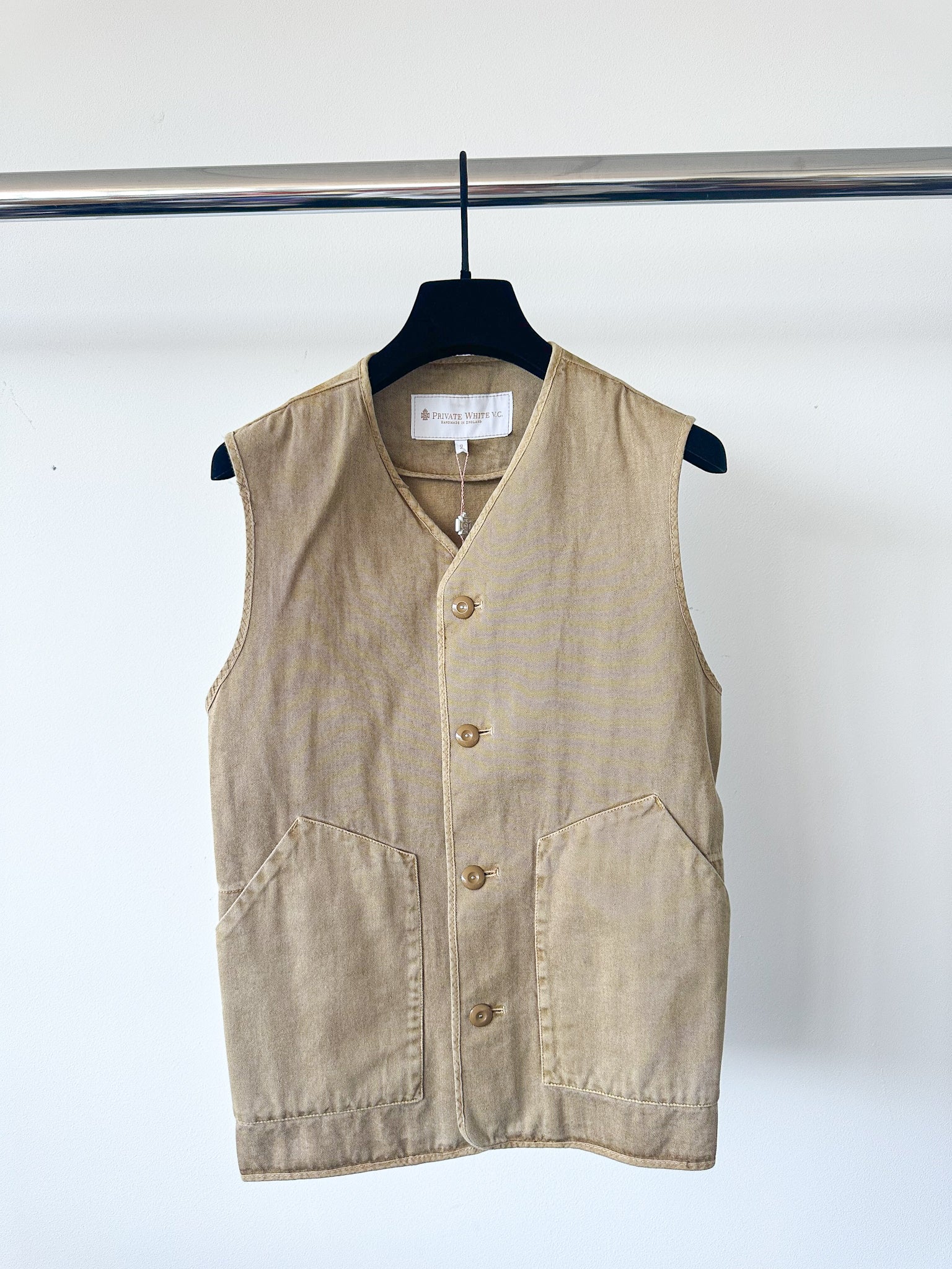 Get ready to turn heads with this Private White V.C Sand Gilet Worksuit Jerkin. Inspired by vintage mechanics' workwear, this quirky and playful piece is sure to make a statement. A perfect blend of style and functionality.