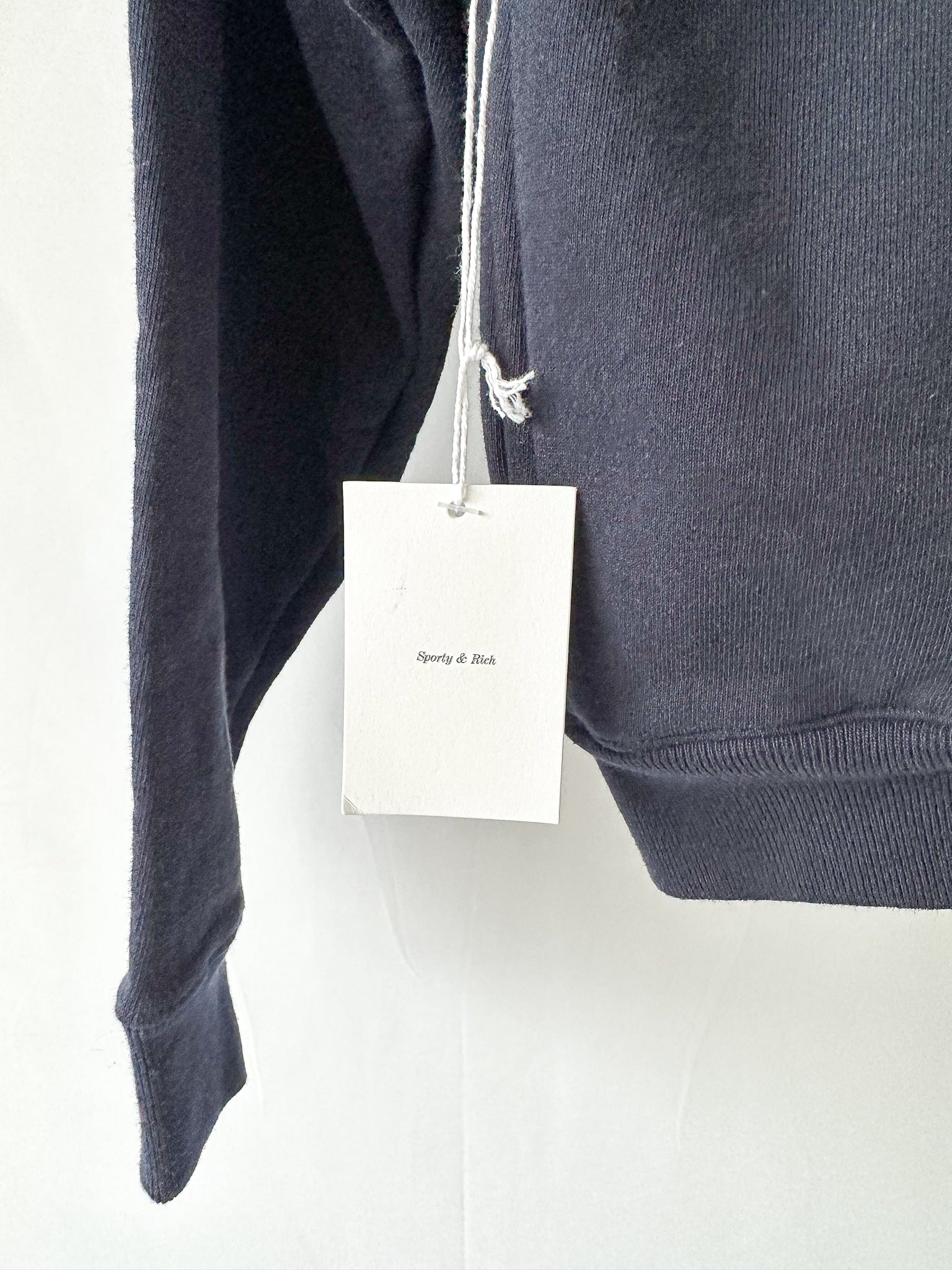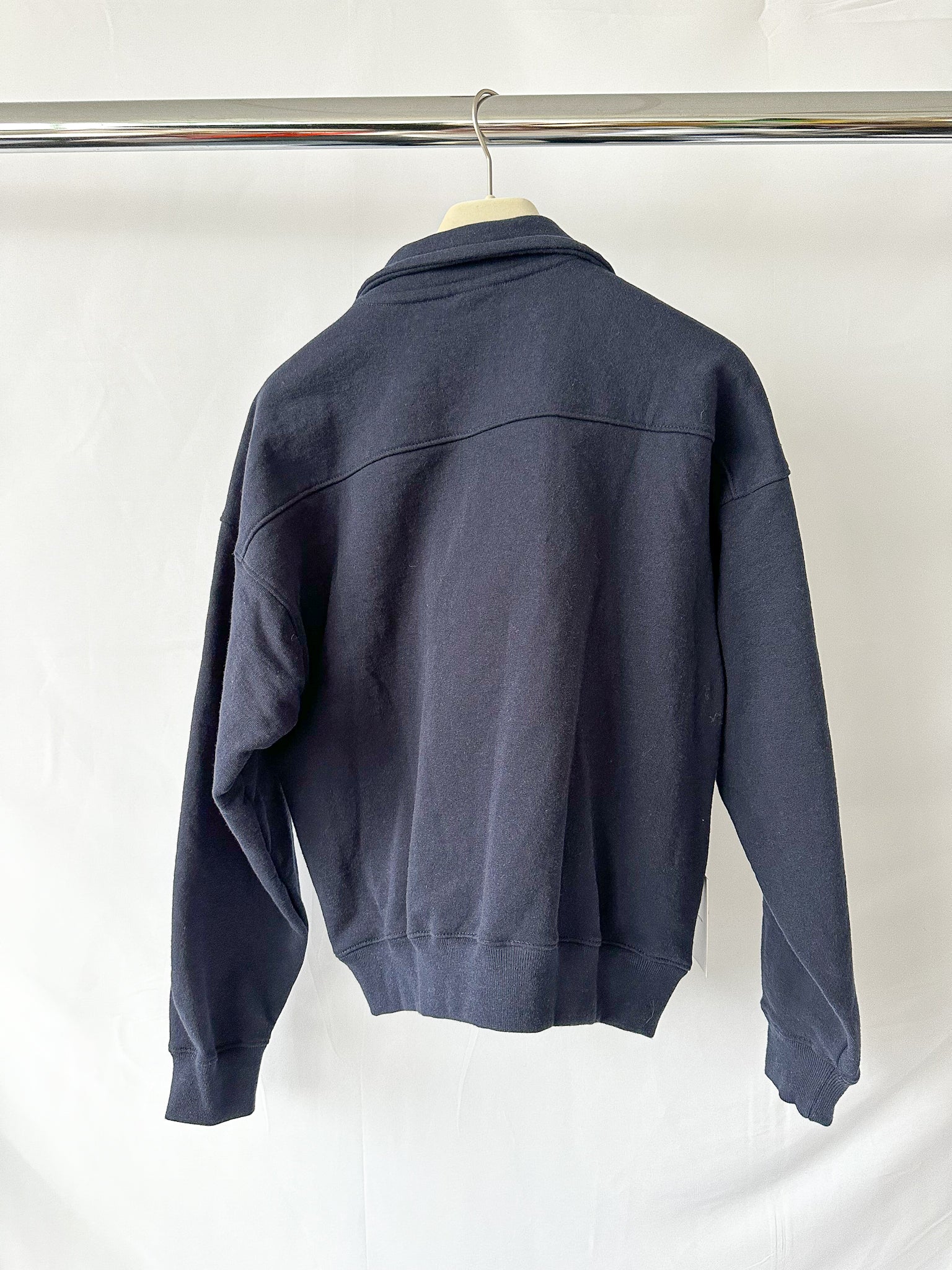 Sporty & Rich Navy Logo Front Quarter Zip Sweatshirt